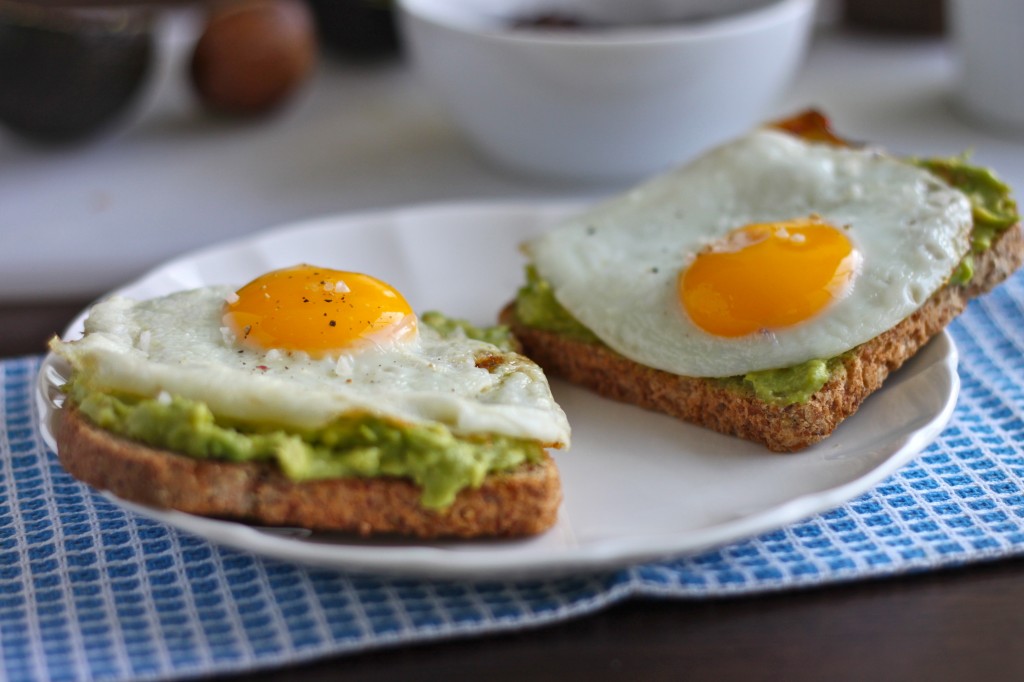 All you need are 2 slices of whole-grain bread, lightly toasted, topped with smashed avocado and a sprinkling of salt and pepper, and you’ve got a flavorful and rich base. Top that with two sunny-side-up eggs for a healthy dose of protein, and you’ve got a well-rounded breakfast.